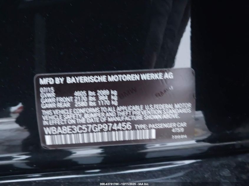 VIN: WBA8E3C57GP974456