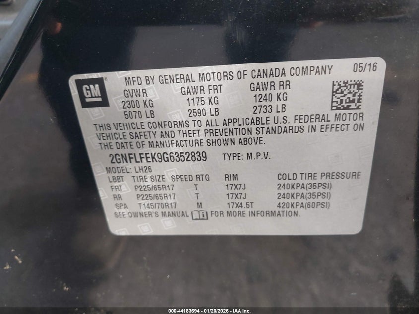 VIN: 2GNFLFEK9G6352839