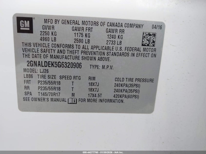 VIN: 2GNALDEK5G6320906