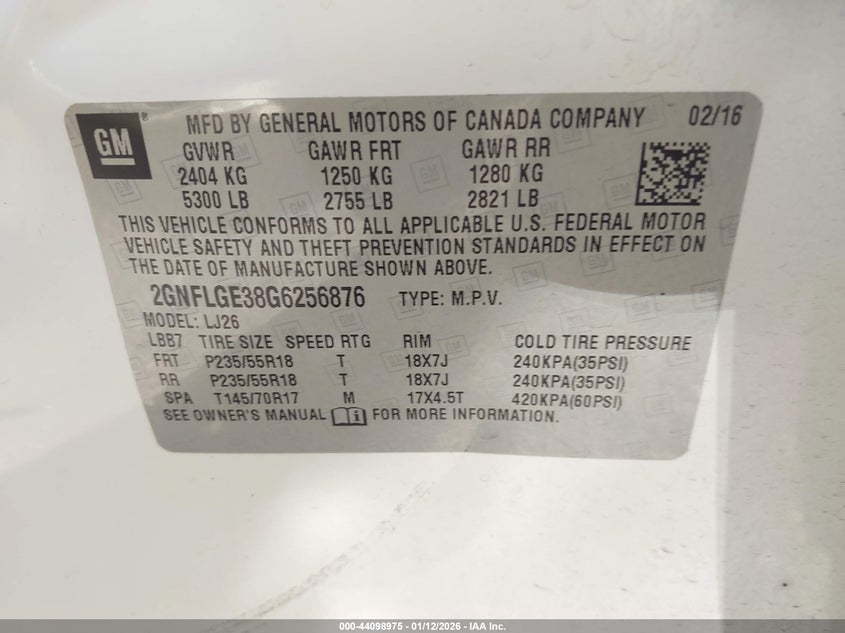 VIN: 2GNFLGE38G6256876