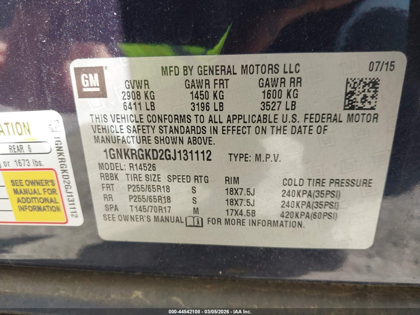 VIN: 1GNKRGKD2GJ131112