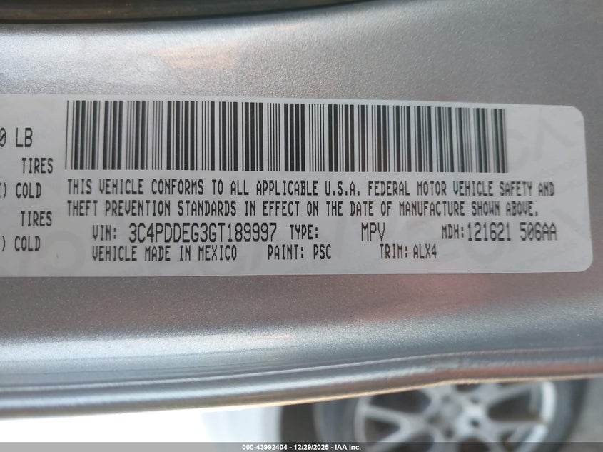 VIN: 3C4PDDEG3GT189997