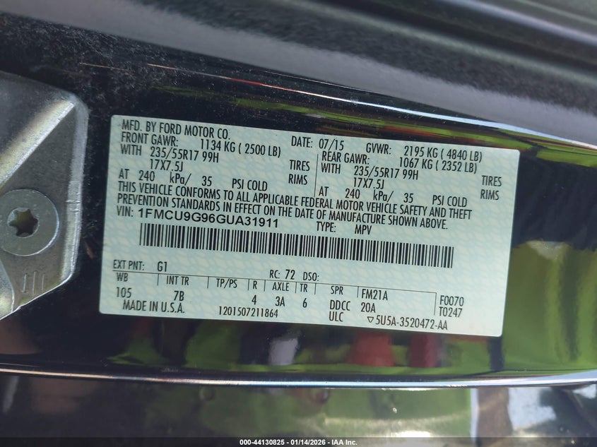 VIN: 1FMCU9G96GUA31911