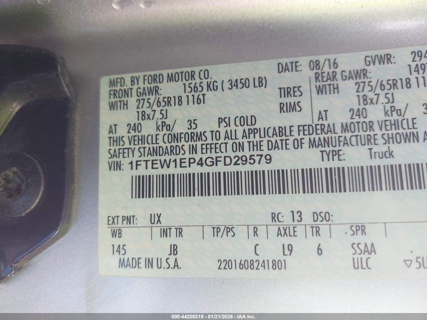 VIN: 1FTEW1EP4GFD29579