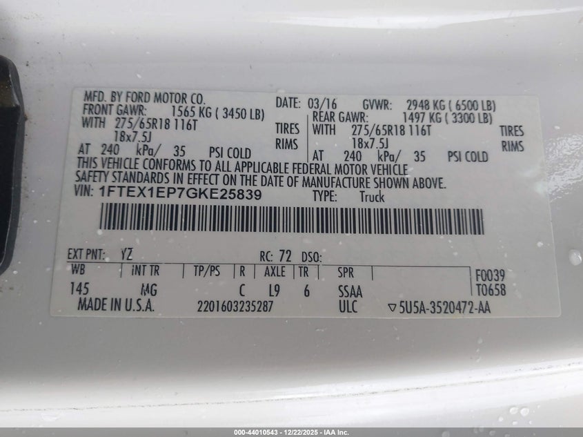 VIN: 1FTEX1EP7GKE25839