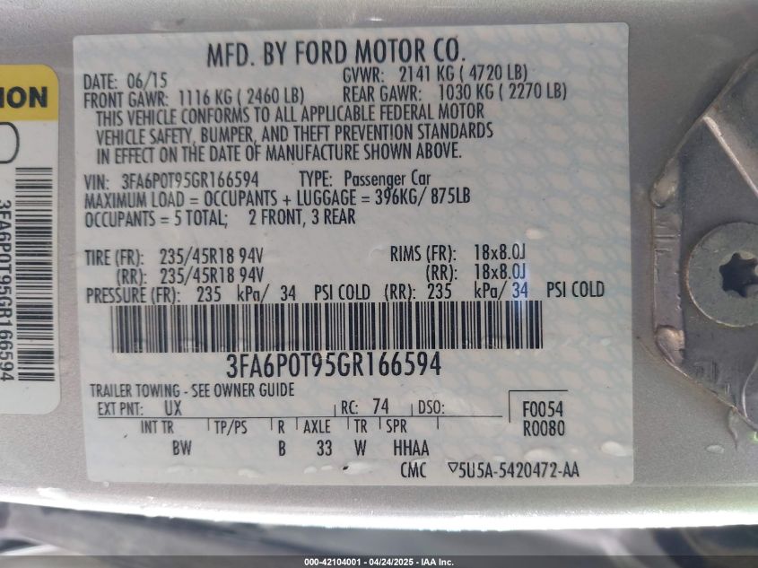 VIN: 3FA6P0T95GR166594
