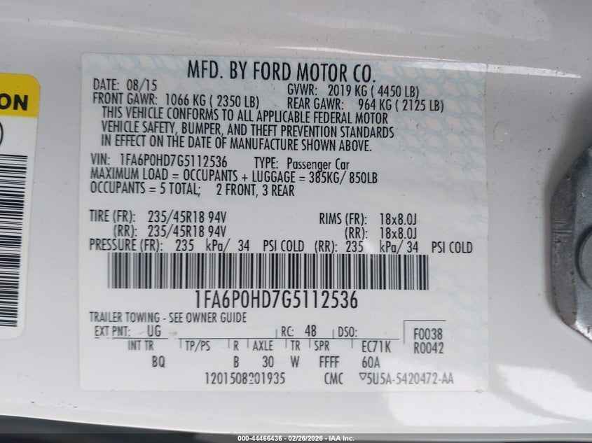 VIN: 1FA6P0HD7G5112536