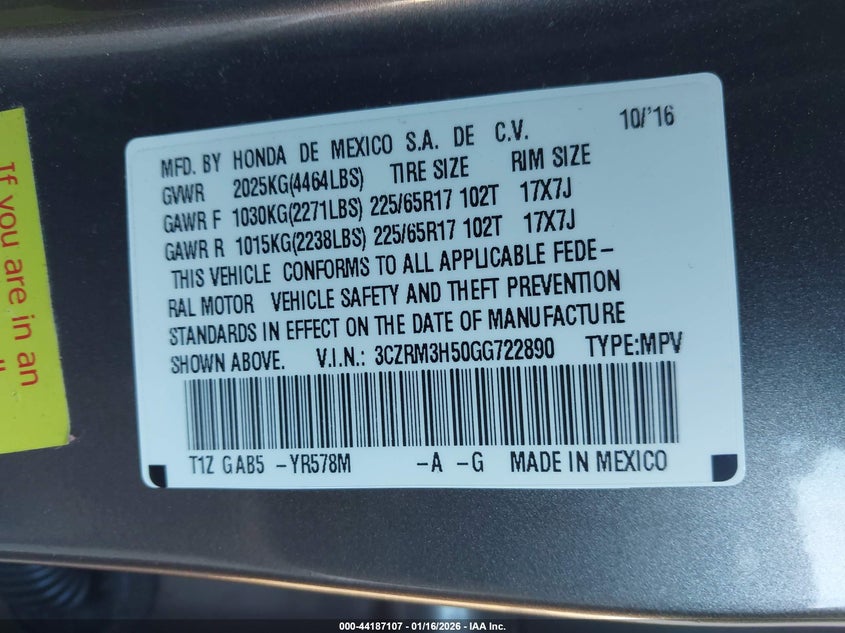 VIN: 3CZRM3H50GG722890