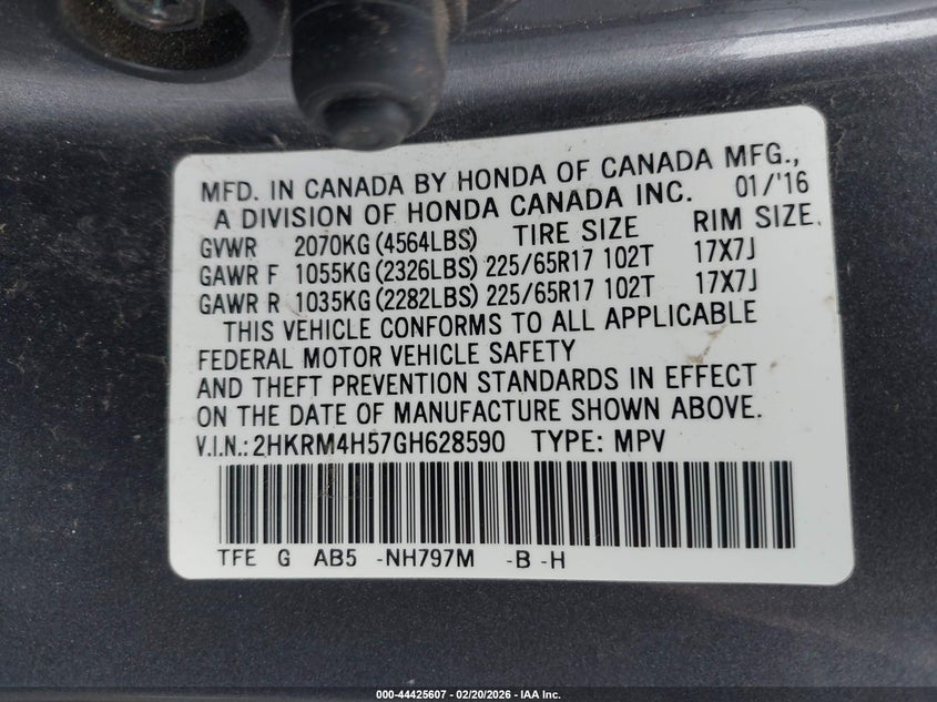 VIN: 2HKRM4H57GH628590