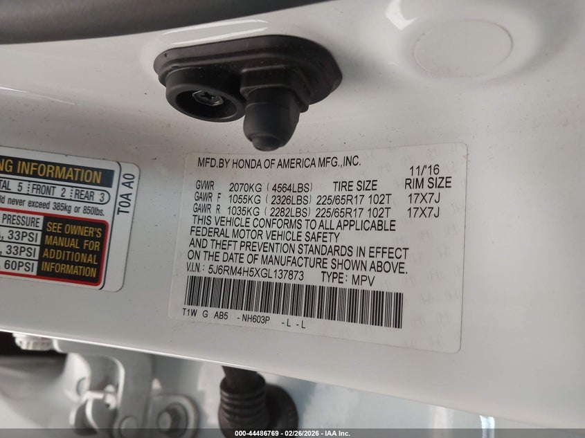 VIN: 5J6RM4H5XGL137873