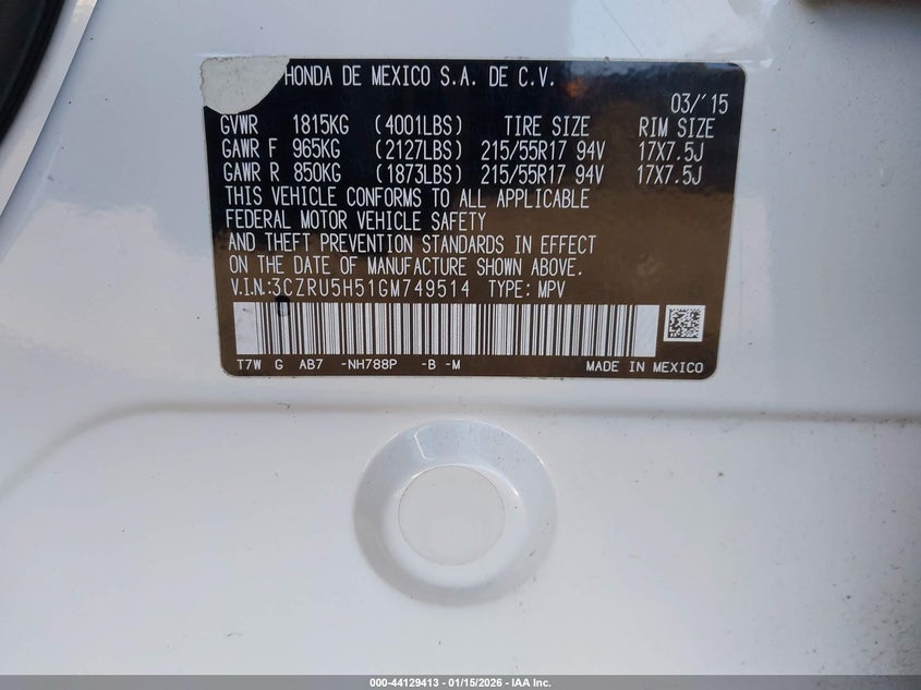 VIN: 3CZRU5H51GM749514