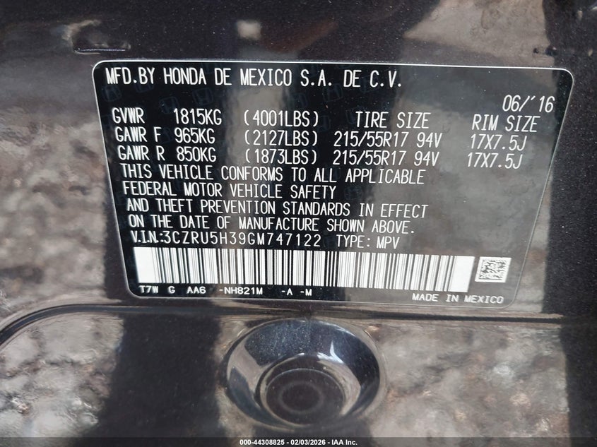 2016 HONDA HR-V LX