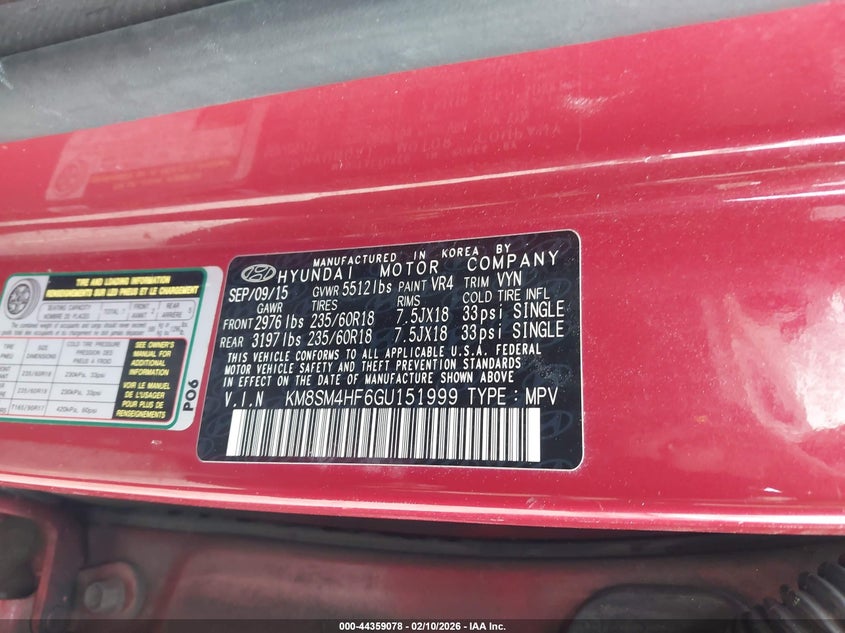 VIN: KM8SM4HF6GU151999