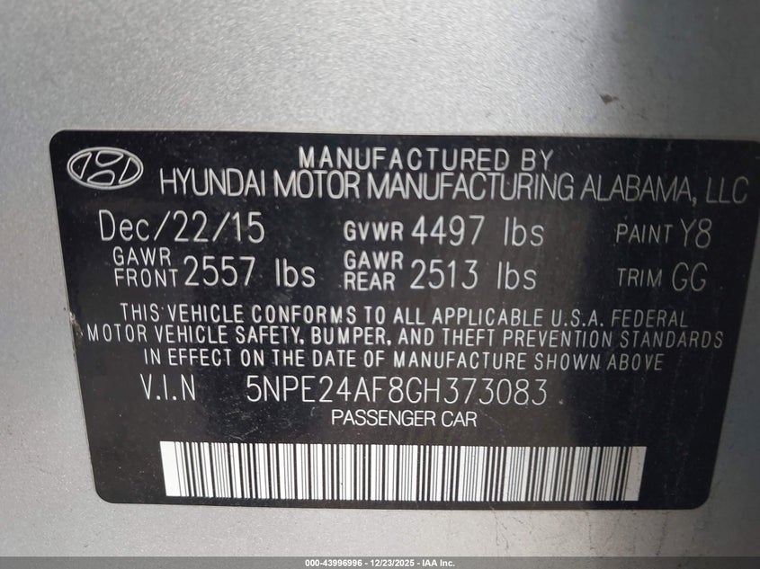 VIN: 5NPE24AF8GH373083