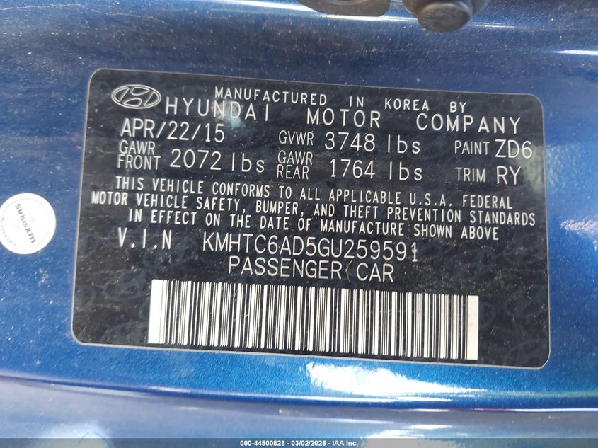 VIN: KMHTC6AD5GU259591