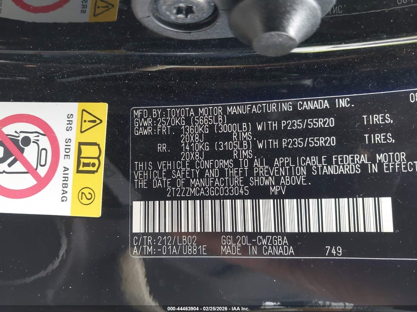 VIN: 2T2ZZMCA3GC033045