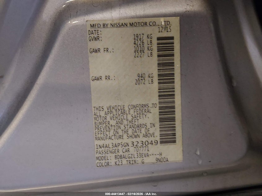 VIN: 1N4AL3AP5GN323049