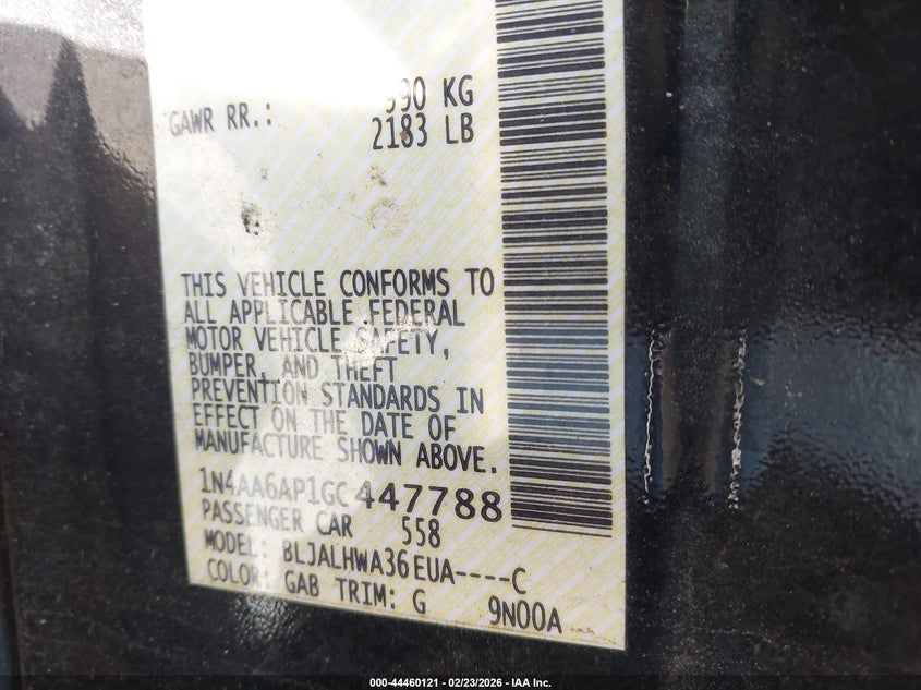 VIN: 1N4AA6AP1GC447788