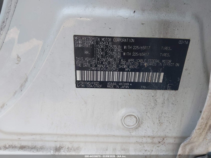 VIN: JTMBFREV0GJ070912