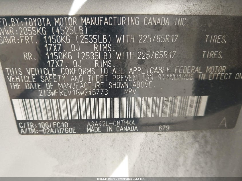 VIN: 2T3WFREV1GW246773