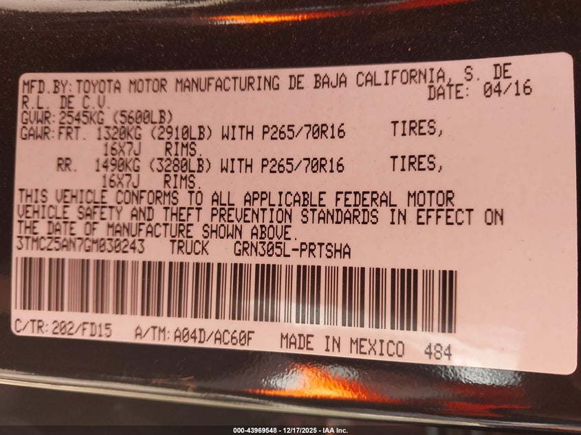 VIN: 3TMCZ5AN7GM030243