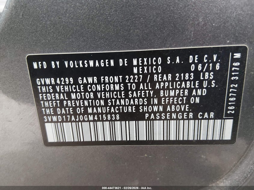 2016 VOLKSWAGEN JETTA 1.8T SPORT