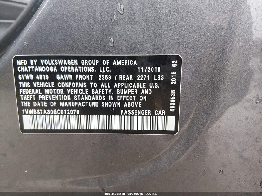 2016 VOLKSWAGEN PASSAT 1.8T SE