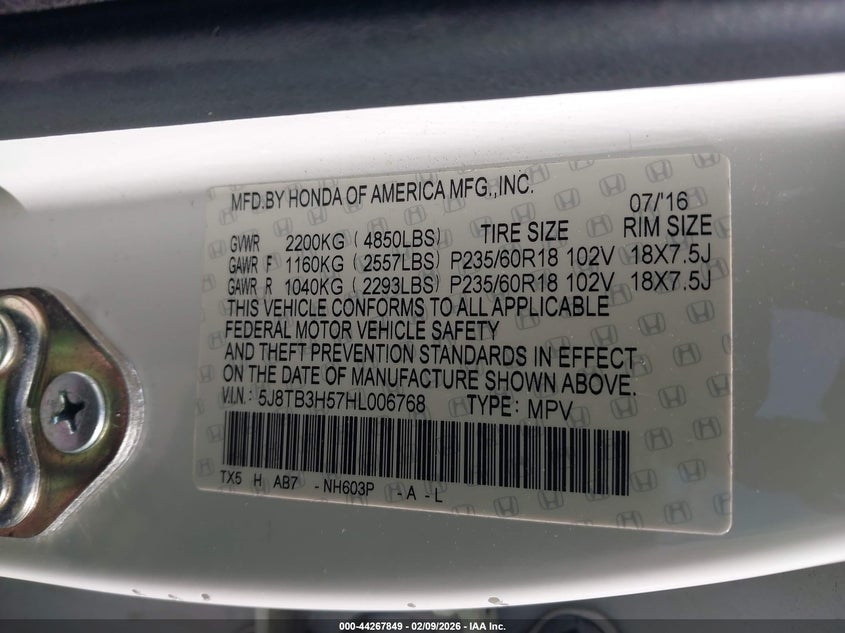 2017 ACURA RDX TECHNOLOGY WATCH PLUS PACKAGES/W/TECHNOLOGY PACK