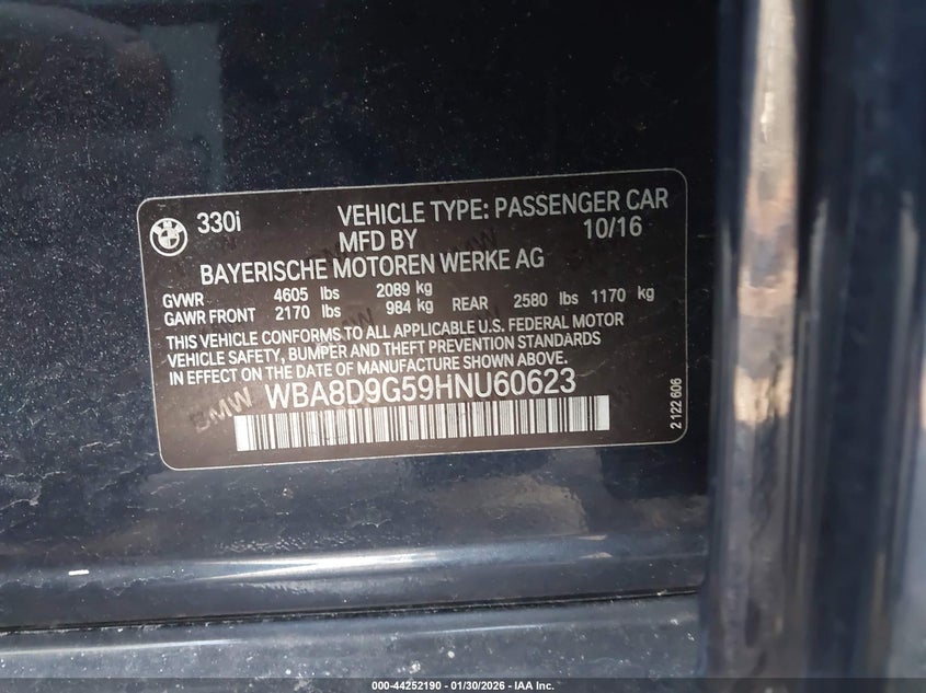 VIN: WBA8D9G59HNU60623