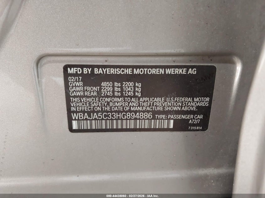 VIN: WBAJA5C33HG894886