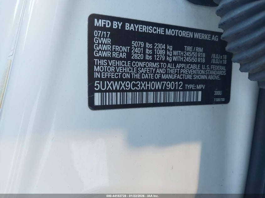 VIN: 5UXWX9C3XH0W79012