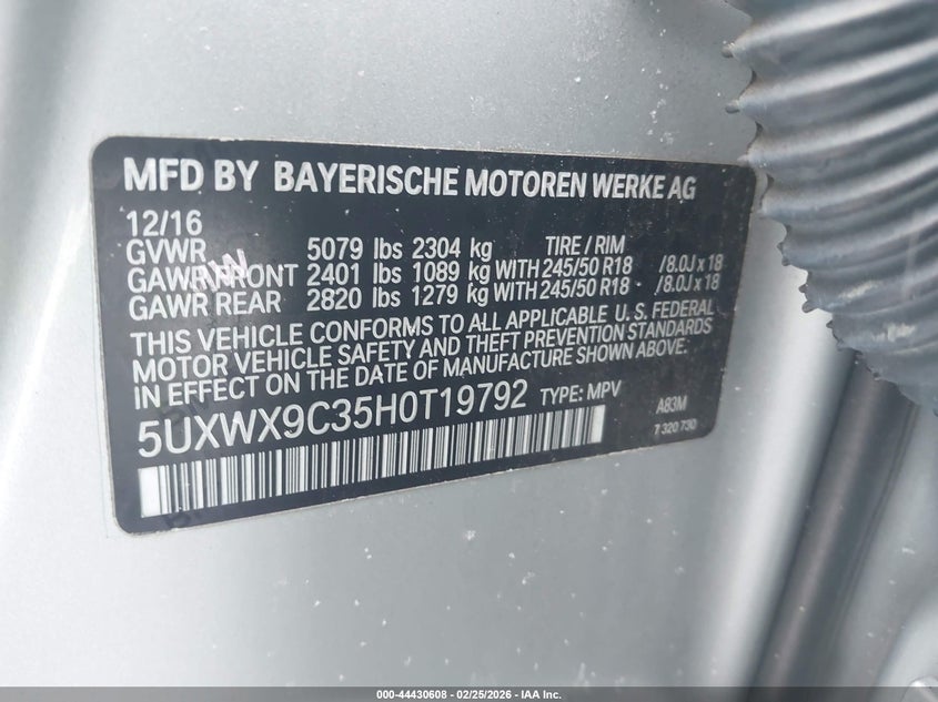 VIN: 5UXWX9C35H0T19792