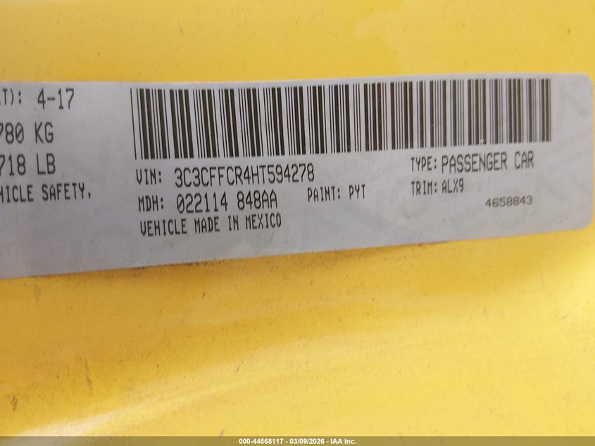 VIN: 3C3CFFCR4HT594278