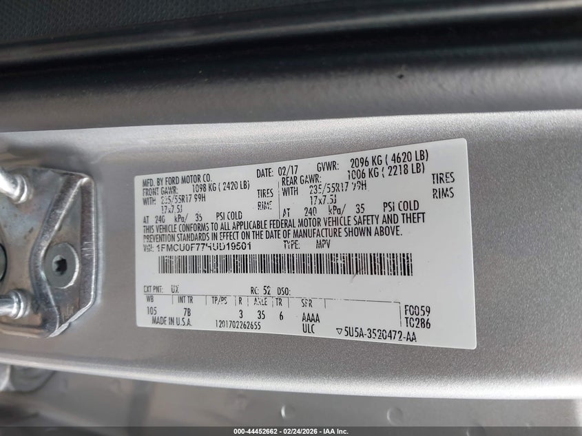 VIN: 1FMCU0F77HUD19501