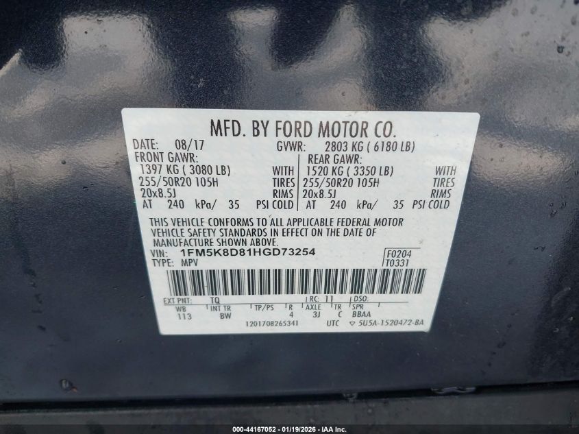 VIN: 1FM5K8D81HGD73254