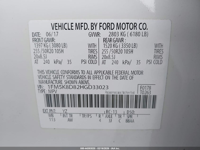 VIN: 1FM5K8D82HGD33023