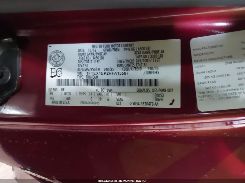 VIN: 1FTEX1EP2HFA15587