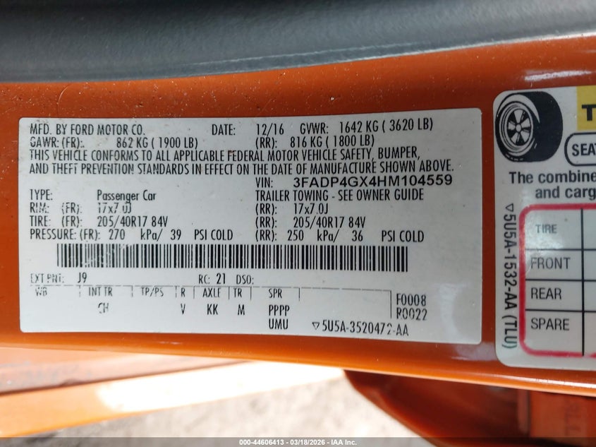 VIN: 3FADP4GX4HM104559