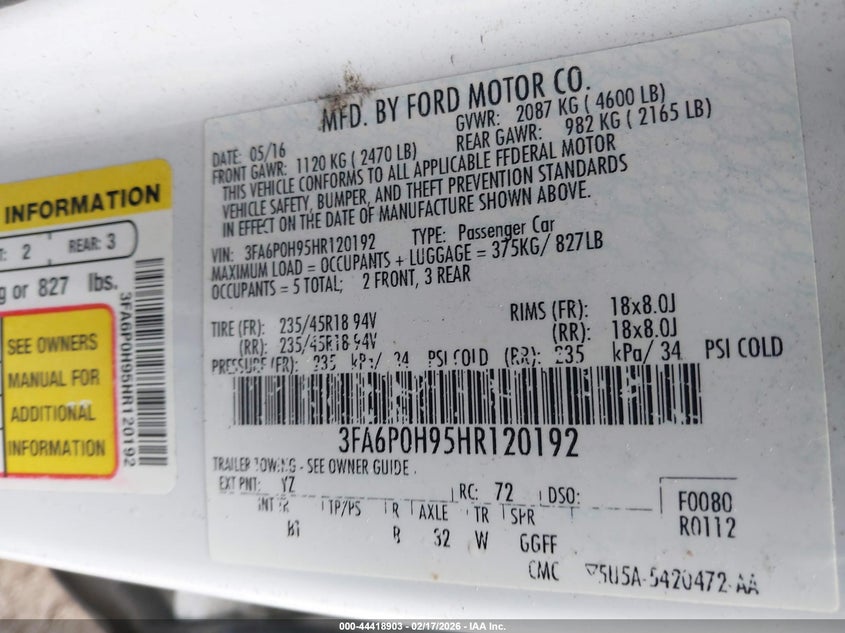 VIN: 3FA6P0H95HR120192