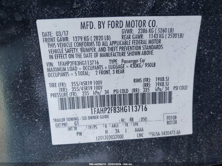 VIN: 1FAHP2F83HG113716