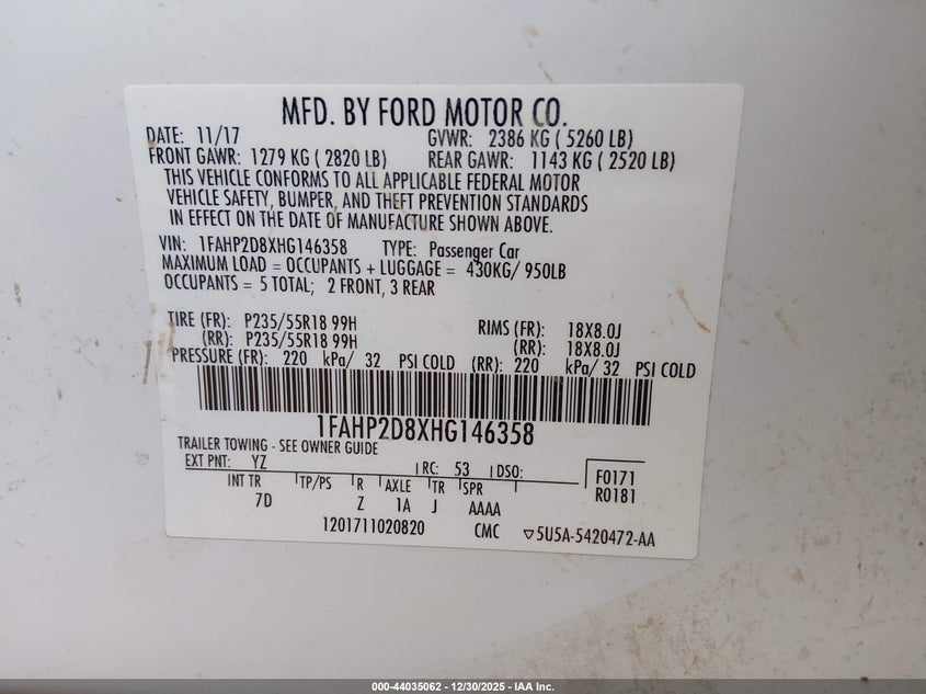 VIN: 1FAHP2D8XHG146358