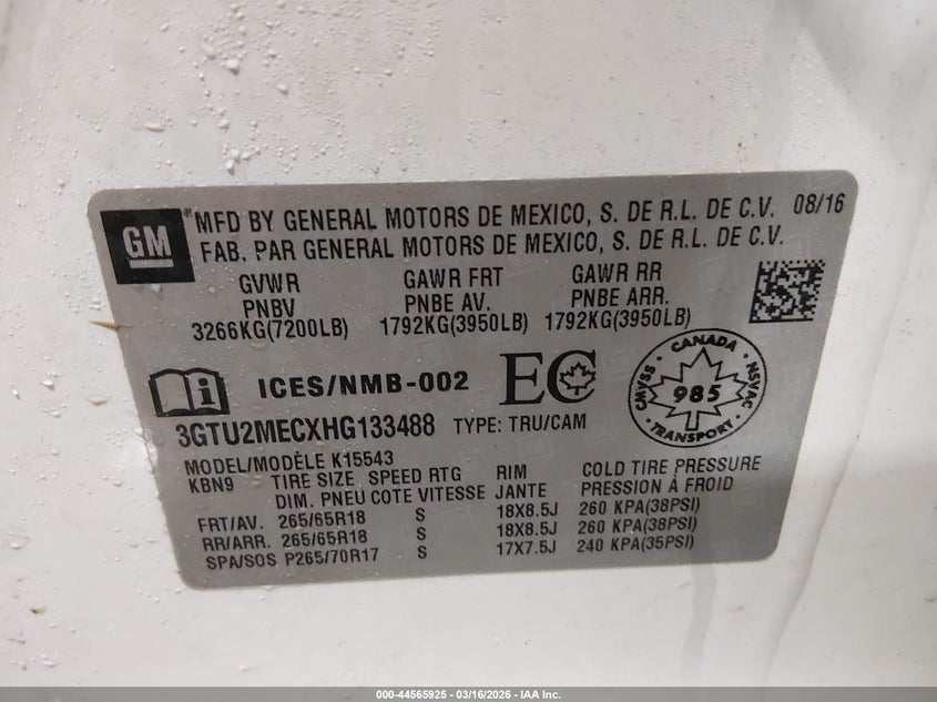 VIN: 3GTU2MECXHG133488