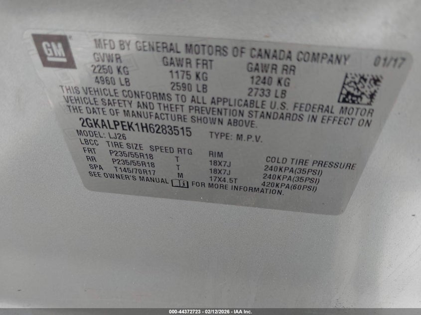 VIN: 2GKALPEK1H6283515