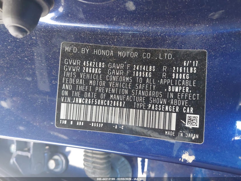 VIN: JHMCR6F50HC028687