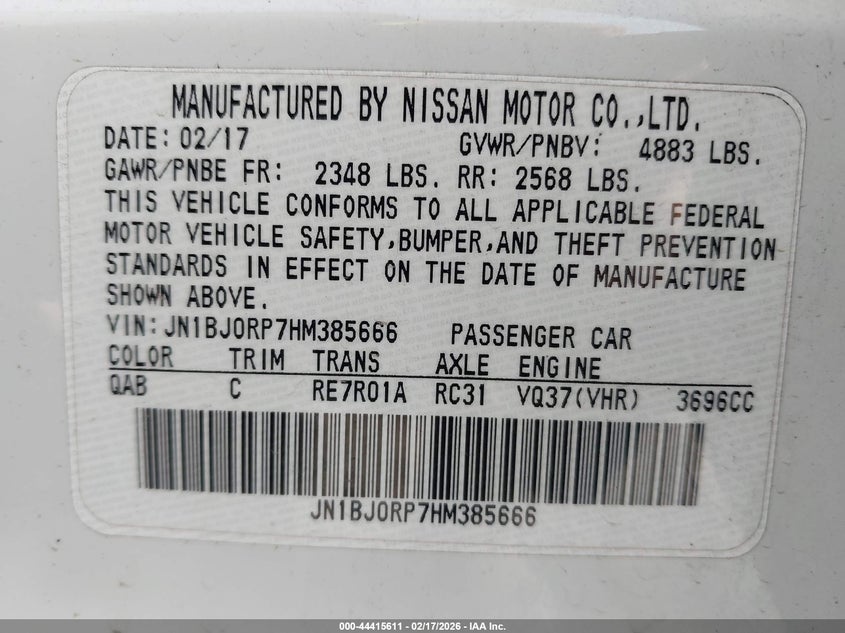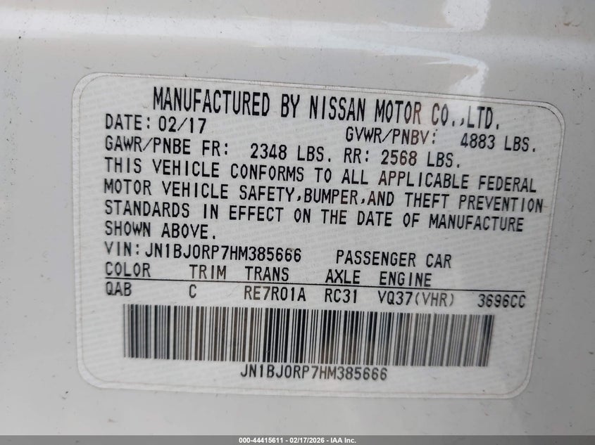 VIN: JN1BJ0RP7HM385666