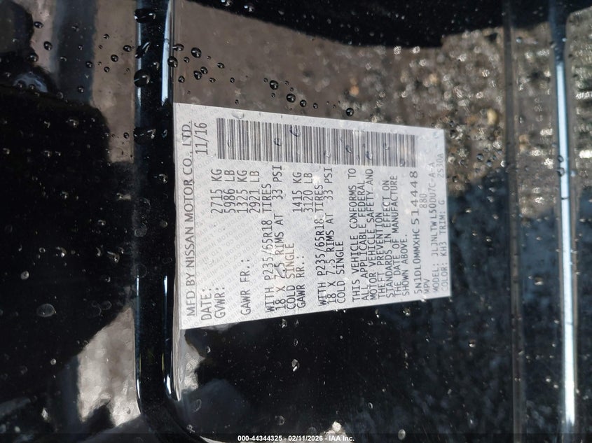 VIN: 5N1DL0MMXHC514448