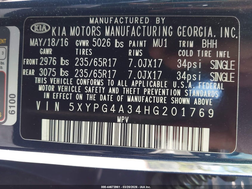 VIN: 5XYPG4A34HG201769