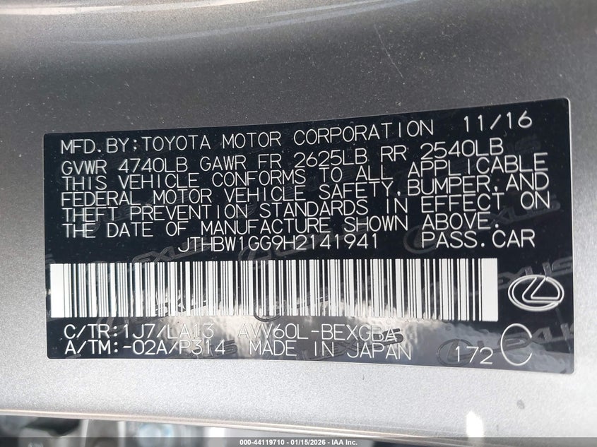 VIN: JTHBW1GG9H2141941