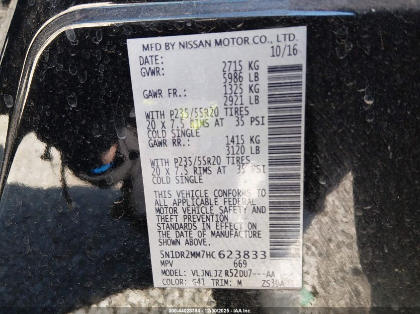 VIN: 5N1DR2MM7HC623833