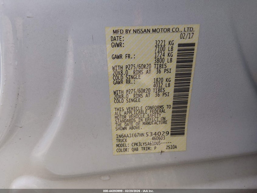 VIN: 1N6AA1E67HN534029